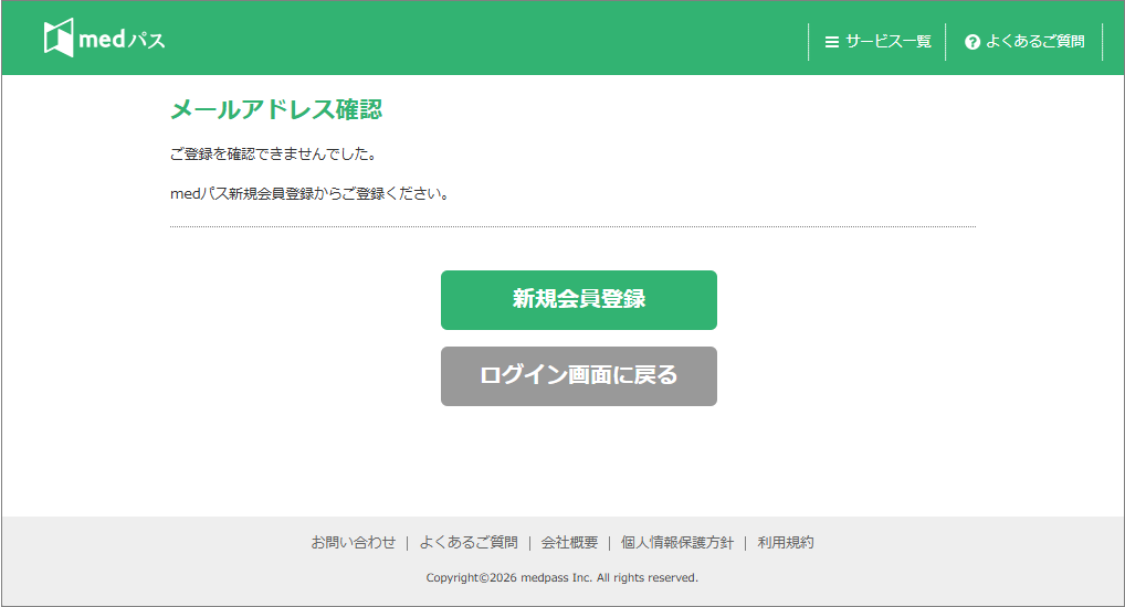 - 氏名、生年月日に該当するmedパス登録メールアドレスが無い場合
