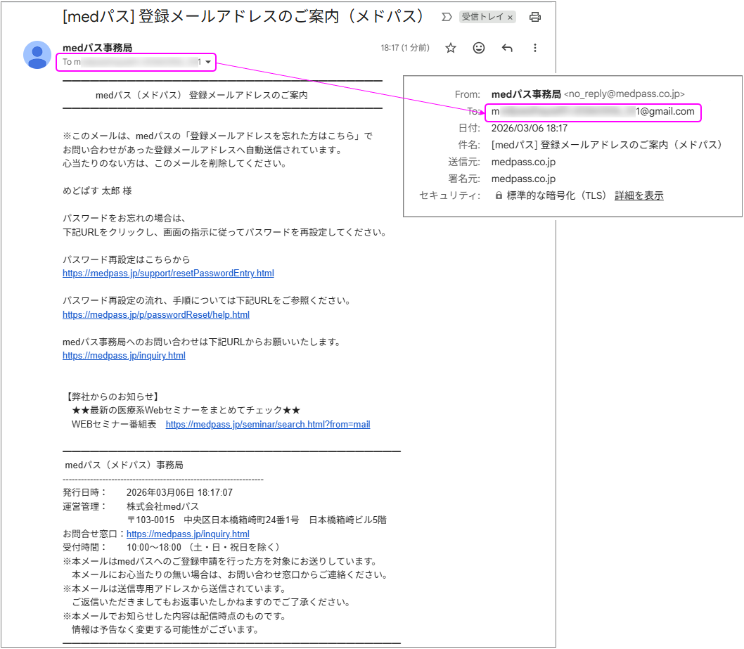 『[medパス] 登録メールアドレスのご案内(メドパス)』